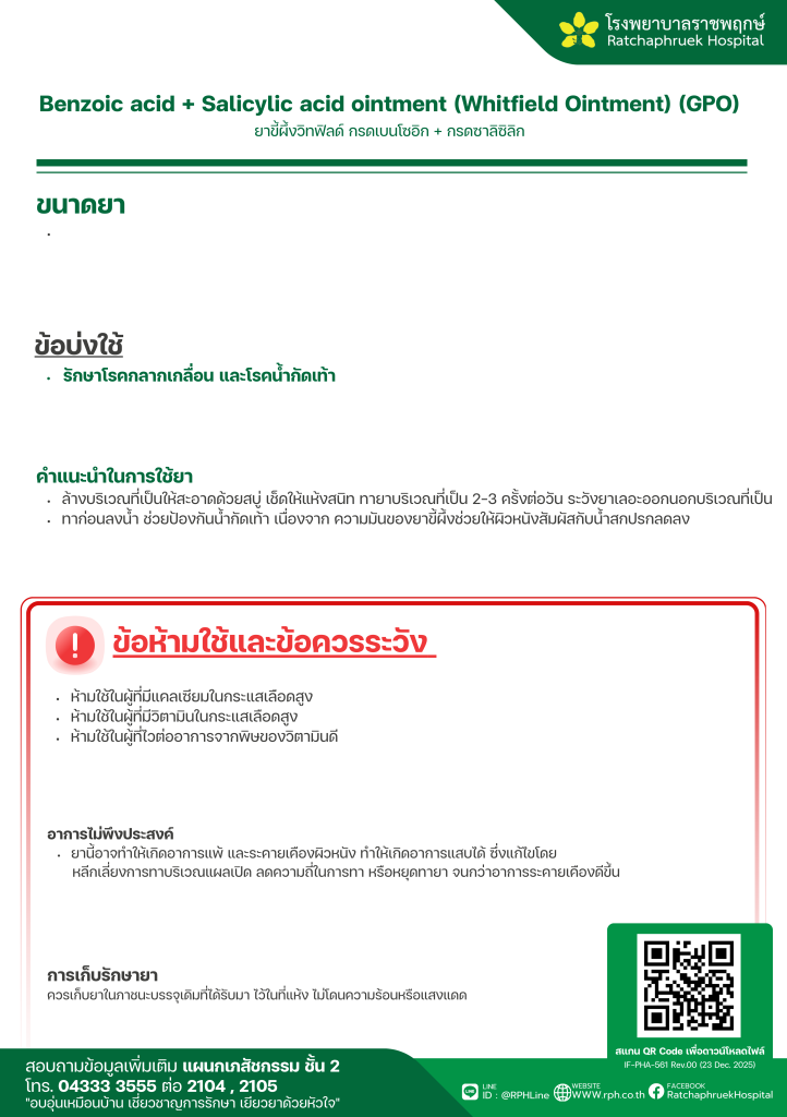 Benzoic acid + Salicylic acid ointment (Whitfield Ointment) (GPO) (ยาขี้ผึ้งวิทฟิลด์) 2 กุมภาพันธ์ 25692 กุมภาพันธ์ 2026qualityDrug Information, ความรู้สุขภาพ FacebookFacebookXXLINELine