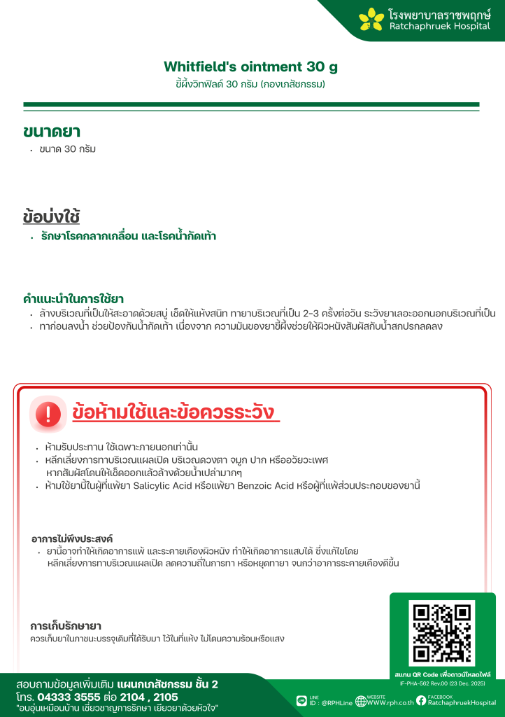 Whitfield’s ointment 30 g (ขี้ผึ้งวิทฟิลด์ กองเภสัชกรรม) 2 กุมภาพันธ์ 25692 กุมภาพันธ์ 2026qualityDrug Information, ความรู้สุขภาพ FacebookFacebookXXLINELine