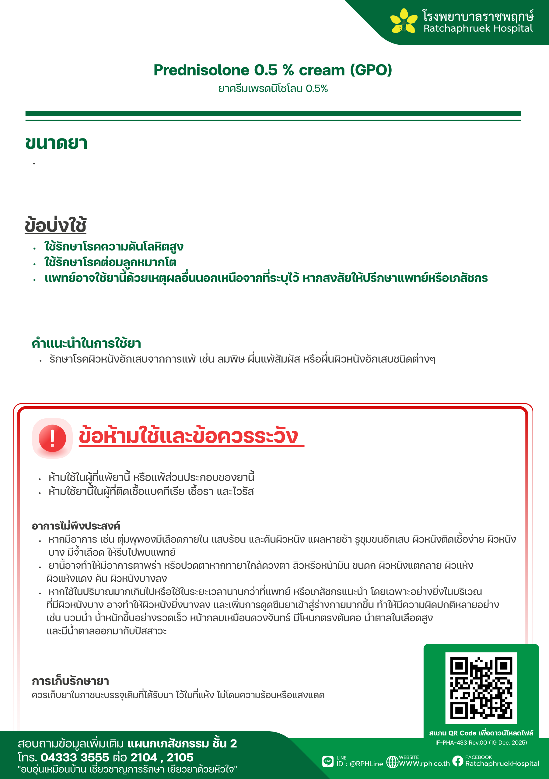 Drug Information Prednisolone acetate eye drop (INF-OPH) (ยาหยอดตาเพรดนิโซโลน) เมื่อวันที่ 29 มกราคม 2569
