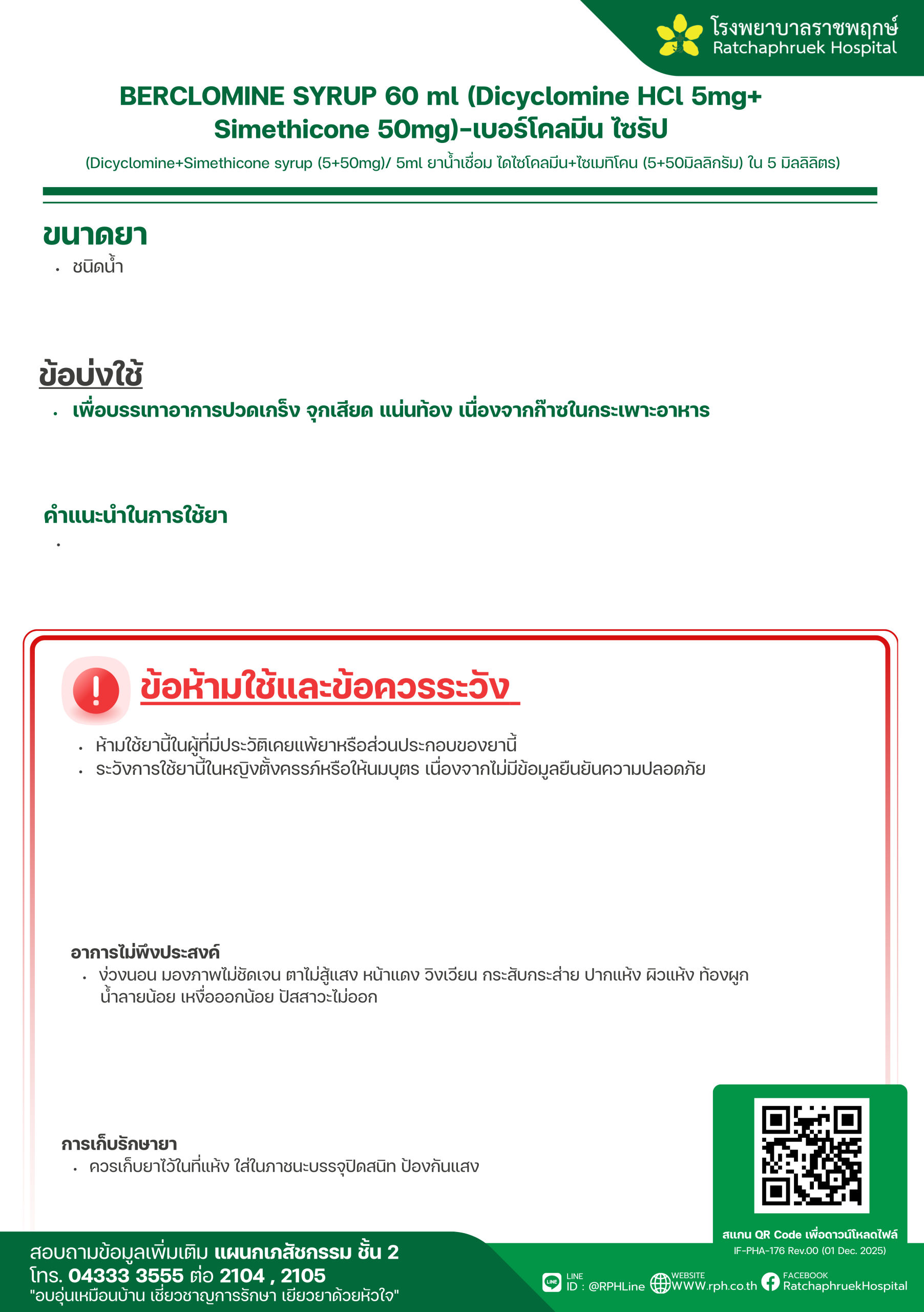 Drug Information BERCLOMINE SYRUP 60 ml (Dicyclomine HCl 5mg+ Simethicone 50mg)-เบอร์โคลมีน ไซรัป เมื่อวันที่ 12 มกราคม 2569