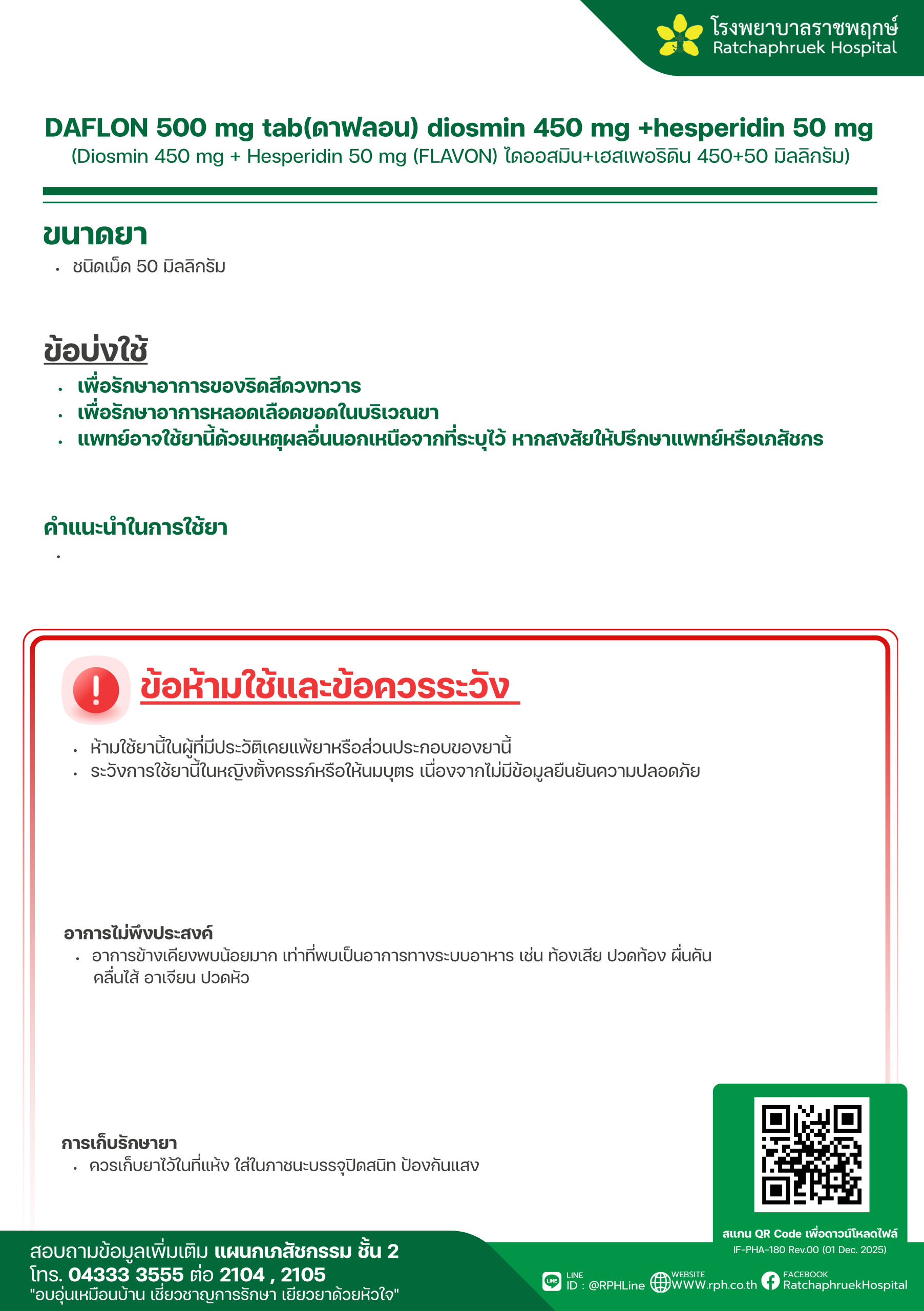 Drug Information DAFLON 500 mg tab(ดาฟลอน) diosmin 450 mg +hesperidin 50 mg เมื่อวันที่ 12 มกราคม 2569