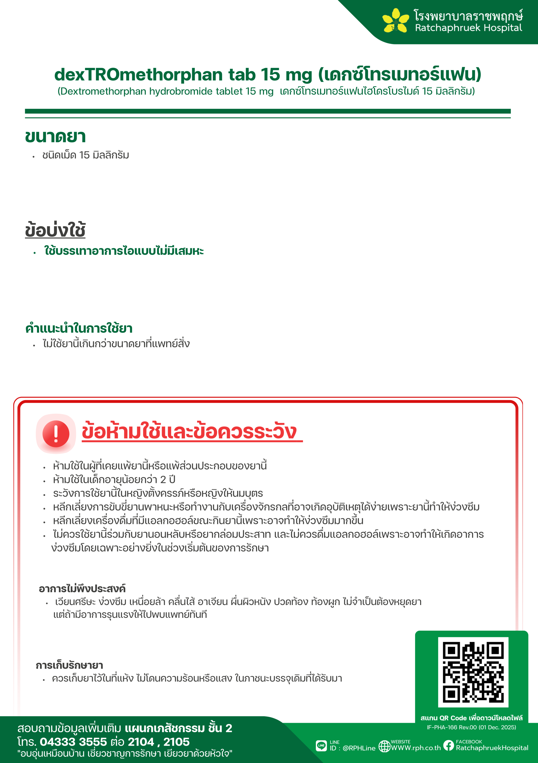 Drug Information Dextromethorphan syrup 5mg /5ml (A-TUSSIN) (ยาระงับอาการไอ เดกซ์โทรเมทอร์แฟน) เมื่อวันที่ 10 มกราคม 2569