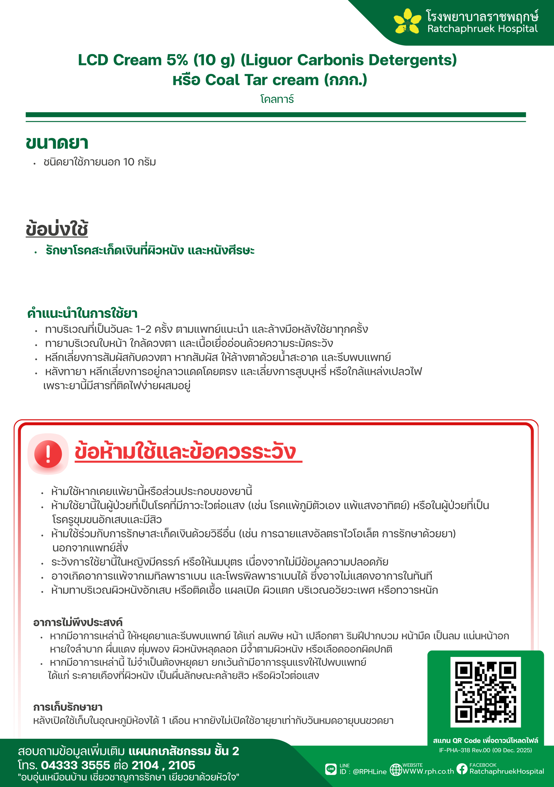 Drug Information LCD Cream 5% (10 g) (Liguor Carbonis Detergents) หรือ Coal Tar cream (กภก.) (โคลทาร์) เมื่อวันที่ 19 มกราคม 2569
