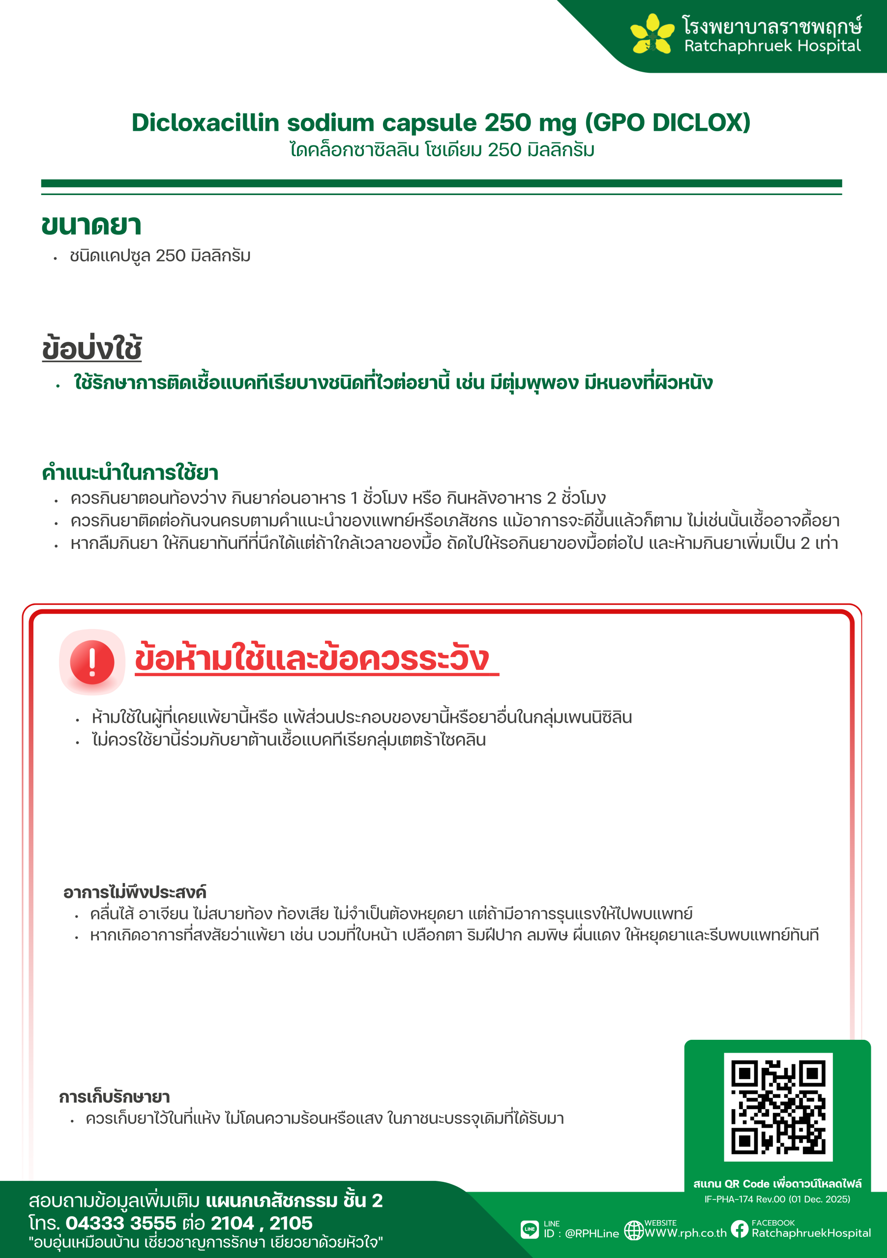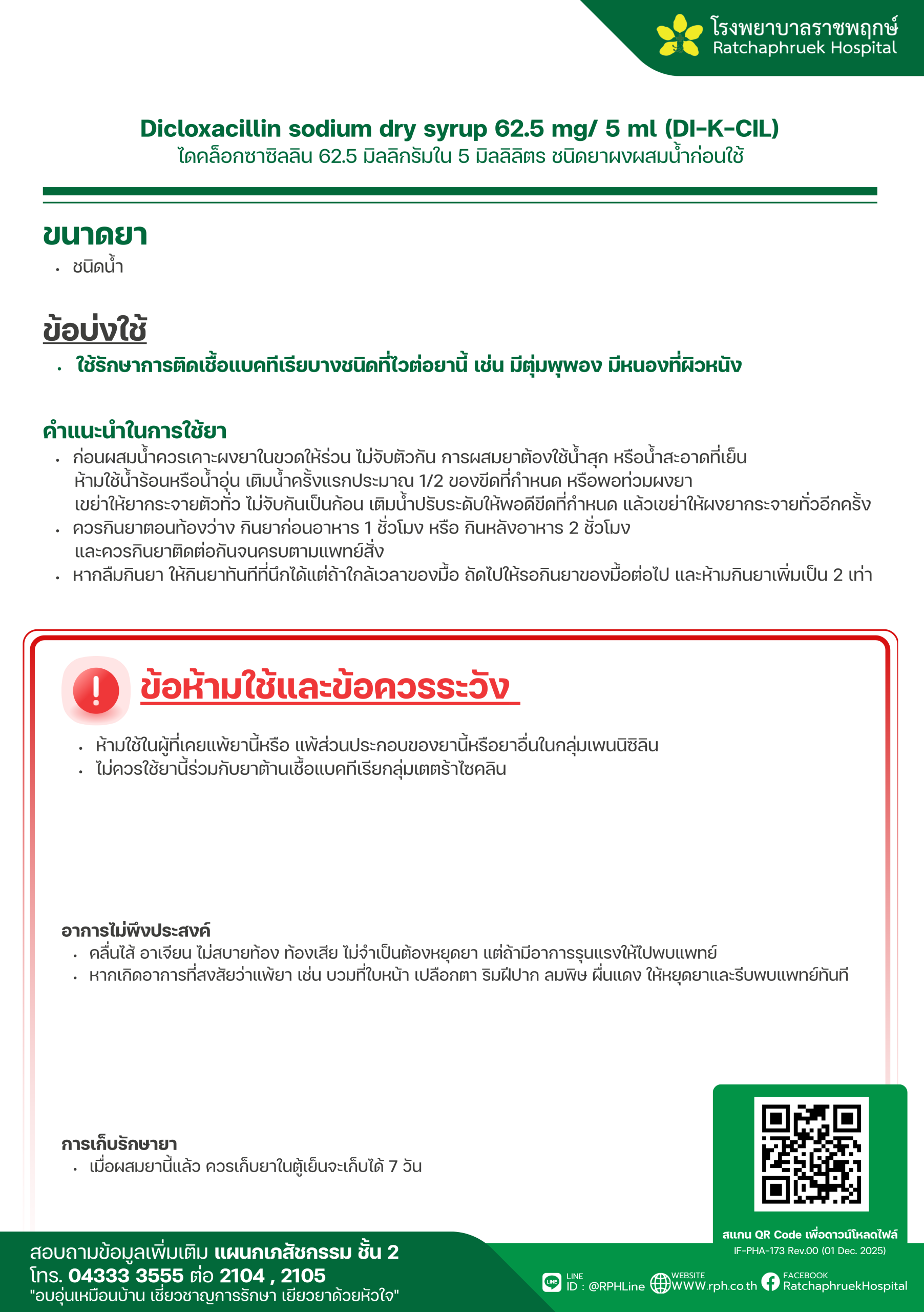 Drug Information IF-PHA-175 Dicloxacillin sodium dry syrup 62.5 mg/ 5 ml (U-DiCLOX-KIDS) (ไดคล็อกซาซิลลิน) เมื่อวันที่ 12 มกราคม 2569