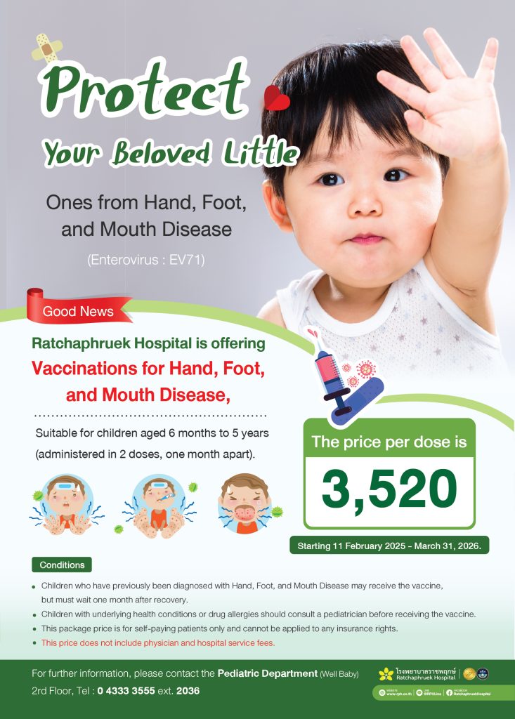 For more information, please contact the Pediatric Department (Good Children) on the 2nd floor Phone : 043-333-555, extension 2036.