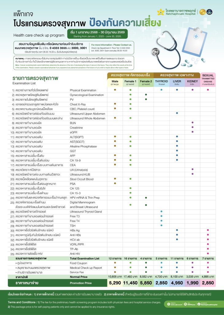 Please Contact us. Check Up Department 3 Floor Tel. 0 4333 3555 ext. 3000, 3001 Open everyday 08.00-16.00