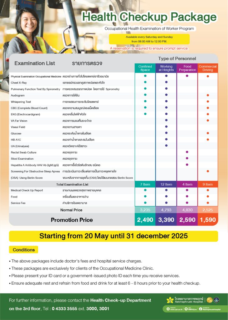 - These packages are exclusively for clients of the Occupational Medicine Clinic.