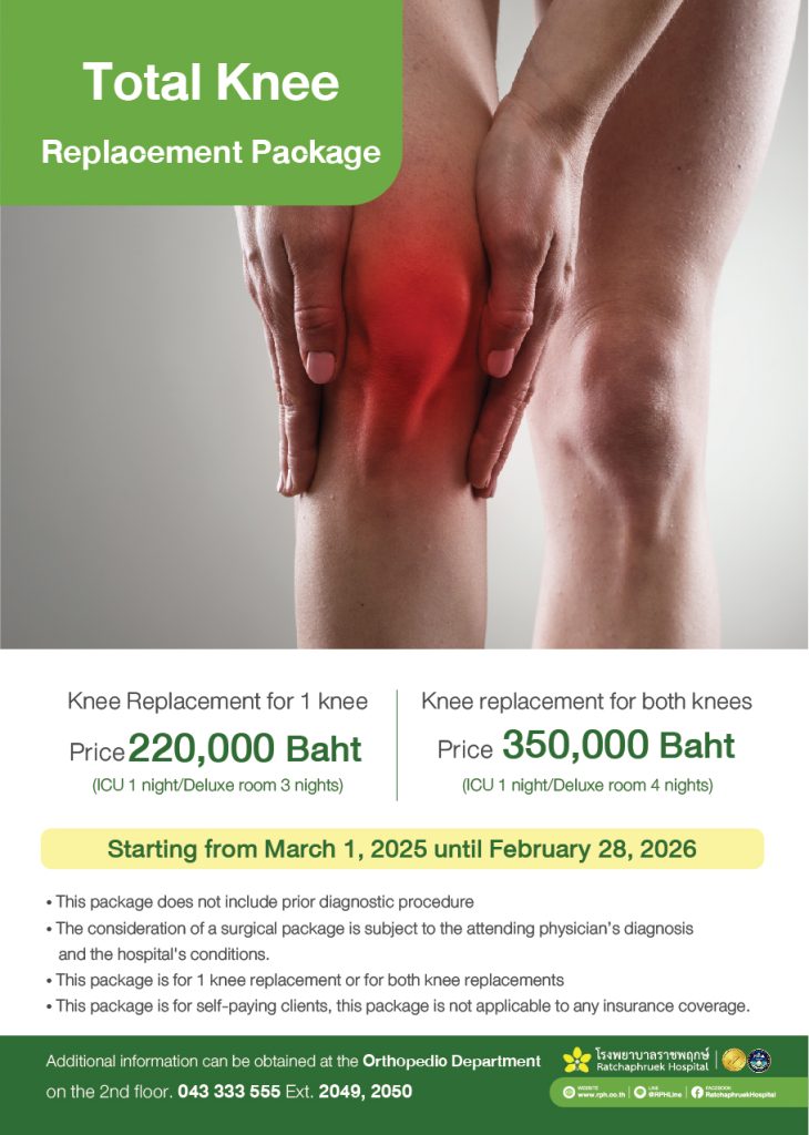Knee Replacement for 1 knee Price: 220,000 Baht