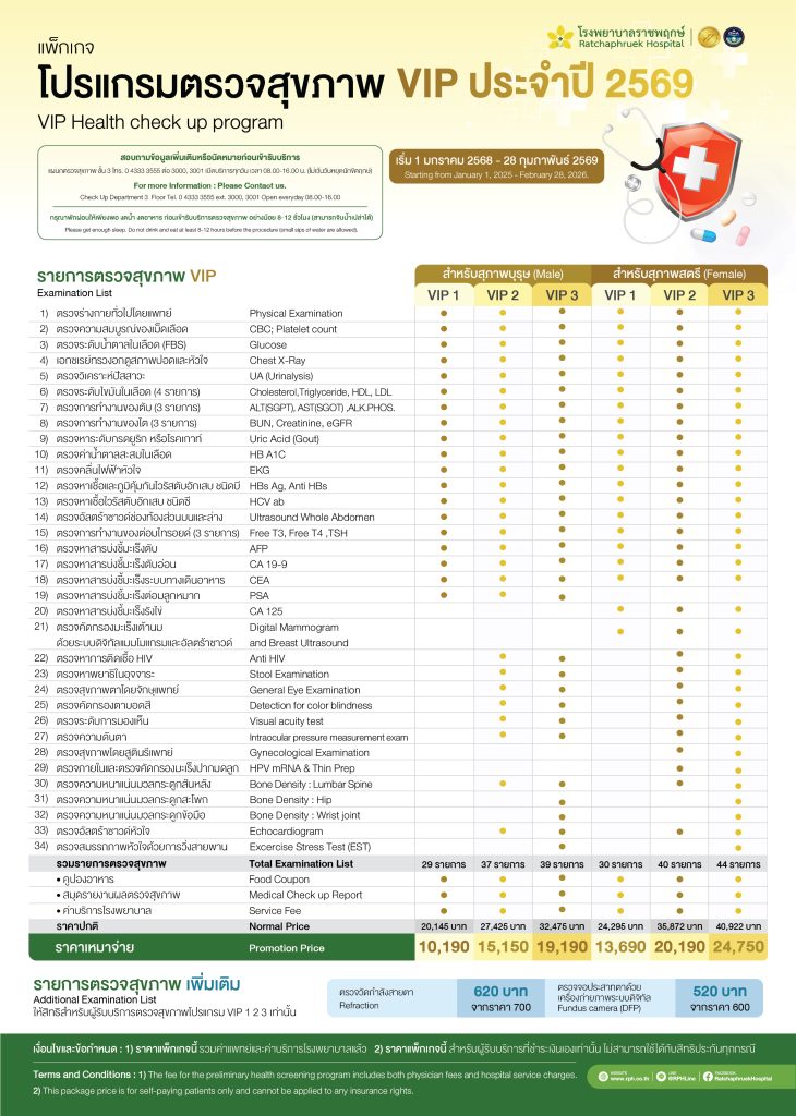 Please Contact us. Check Up Department 3 Floor Tel. 0 4333 3555 ext. 3000, 3001 Open everyday 08.00-16.00