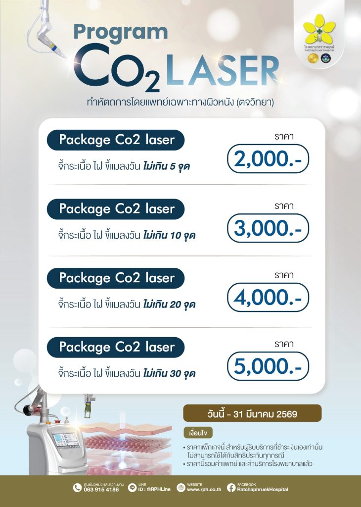 ศูนย์ผิวหนังและความงาม ให้บริการ โปรแกรมเลเซอร์คาร์บอนไดออกไซด์ CO2