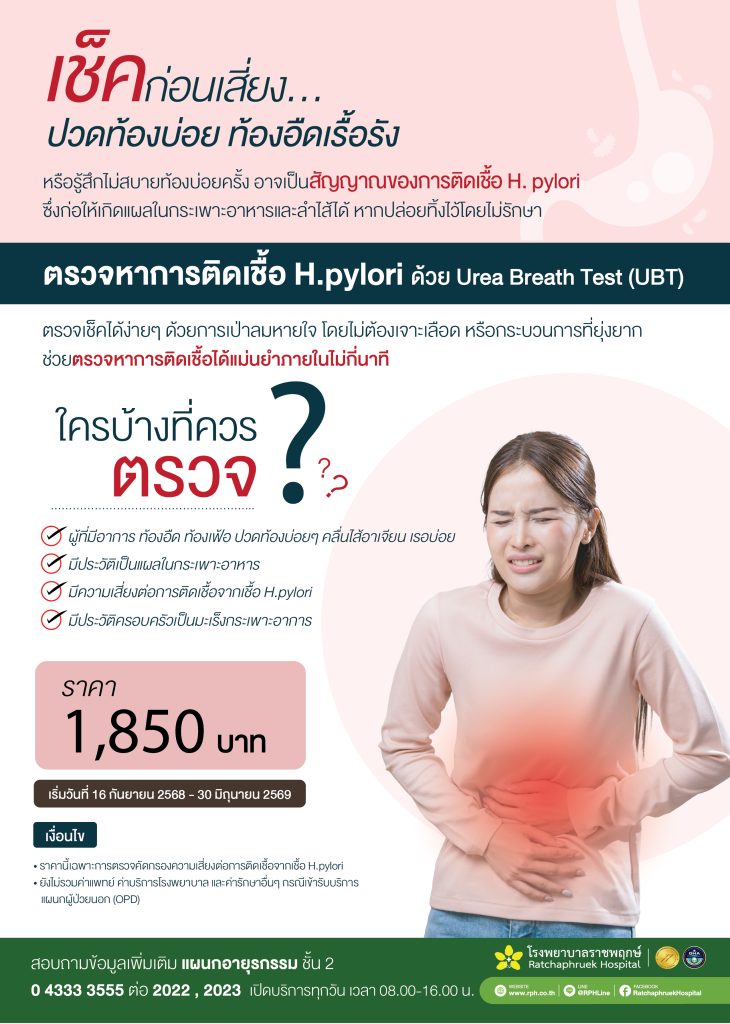 - ราคานี้เฉพาะการตรวจคัดกรองความเสี่ยงต่อการติดเชื้อจากเชื้อ H.pylori
