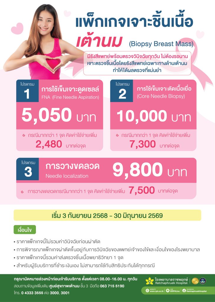 - ราคาแพ็กเกจนี้รวมค่าส่งตรวจชิ้นเนื้อพยาธิวิทยา 1 จุด