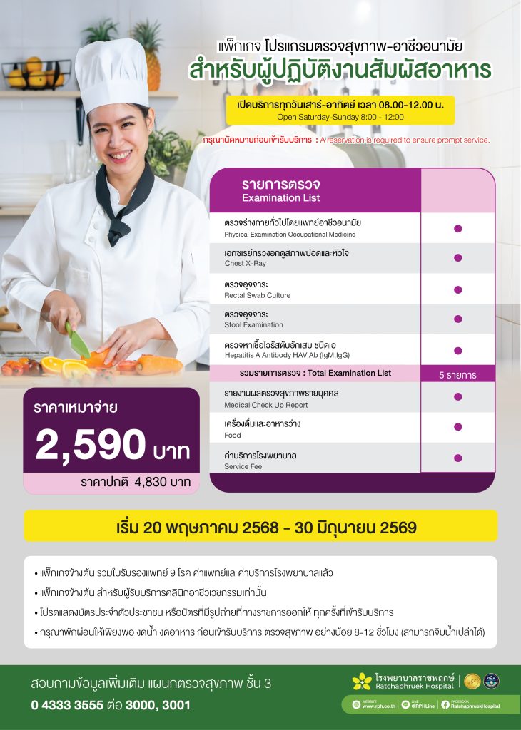• แพ็กเกจข้างต้น สำหรับผู้รับบริการคลินิกอาชีวเวชกรรมเท่านั้น