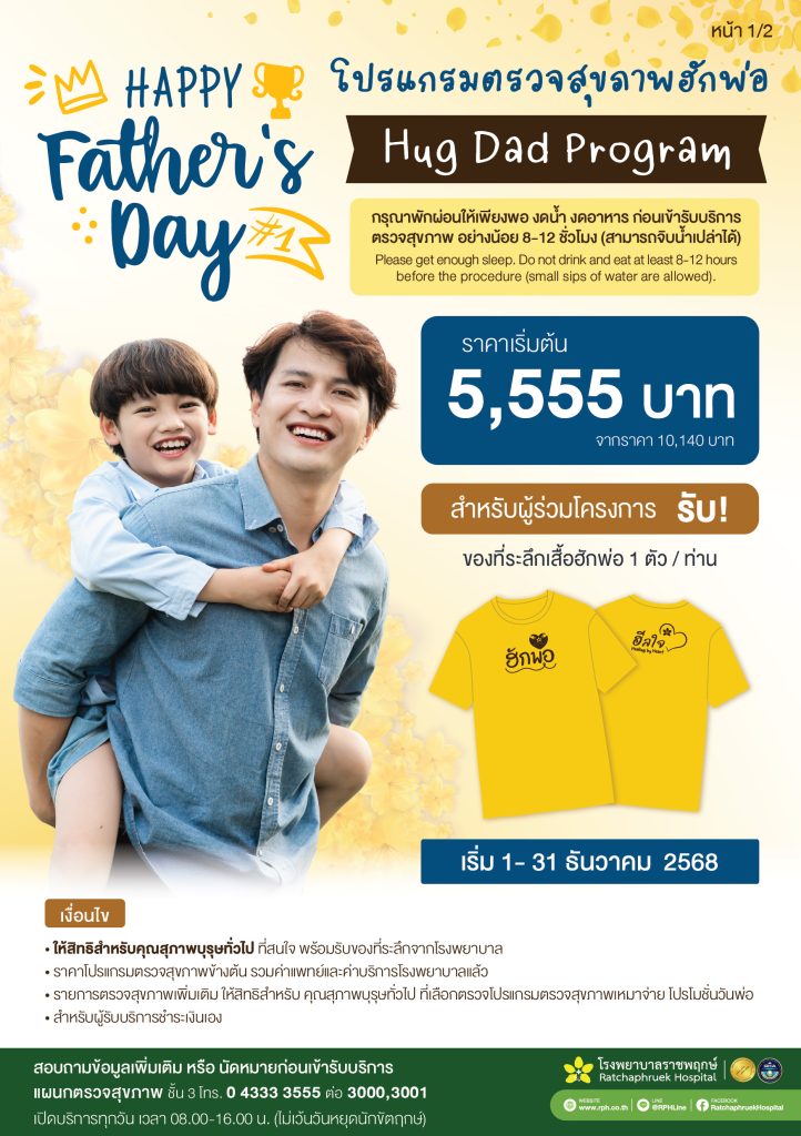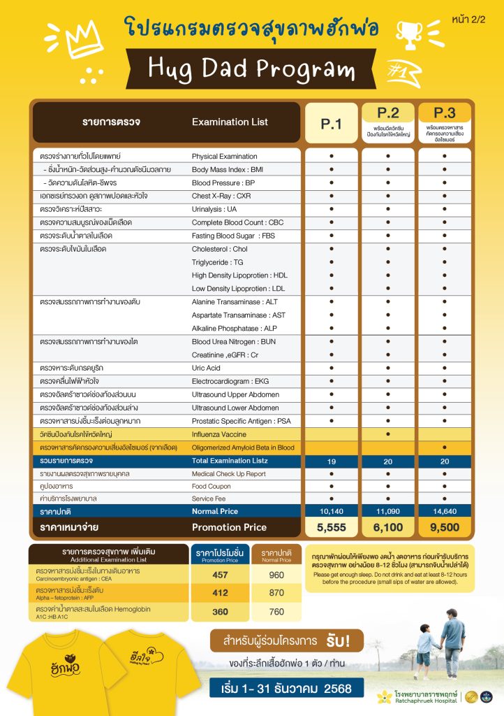 - รายการตรวจสุขภาพเพิ่มเติม ให้สิทธิสำหรับ คุณสุภาพบุรุษทั่วไป ที่เลือกตรวจโปรแกรมตรวจสุขภาพเหมาจ่าย โปรโมชั่นวันพ่อ