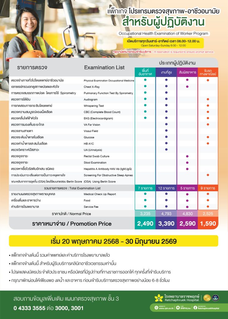 - แพ็กเกจข้างต้นนี้ สำหรับผู้รับบริการคลินิกอาชีวเวชกรรมเท่านั้น