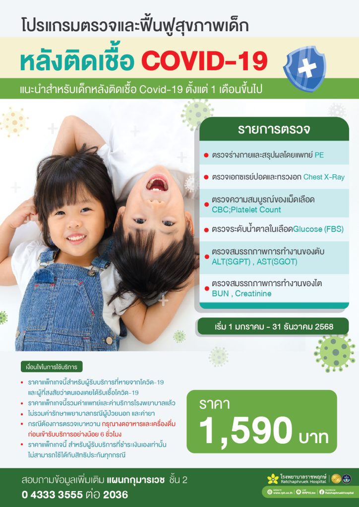หายจากโควิดแล้ว อย่าลืมพาคณหนู ๆ ตรวจเช็คสุขภาพกันนะคะ ด้วยโปรแกรมตรวจ และฟื้นฟูสุขภาพเด็กหลังติดเชื้อ COVID-19