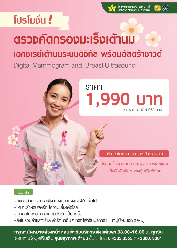 ตรวจคัดกรองมะเร็งเต้านม เอกซเรย์เต้านมระบบดิจิทัล พร้อมอัลตร้าซาวด์ Digital Mammogram and Breast Ultrasound