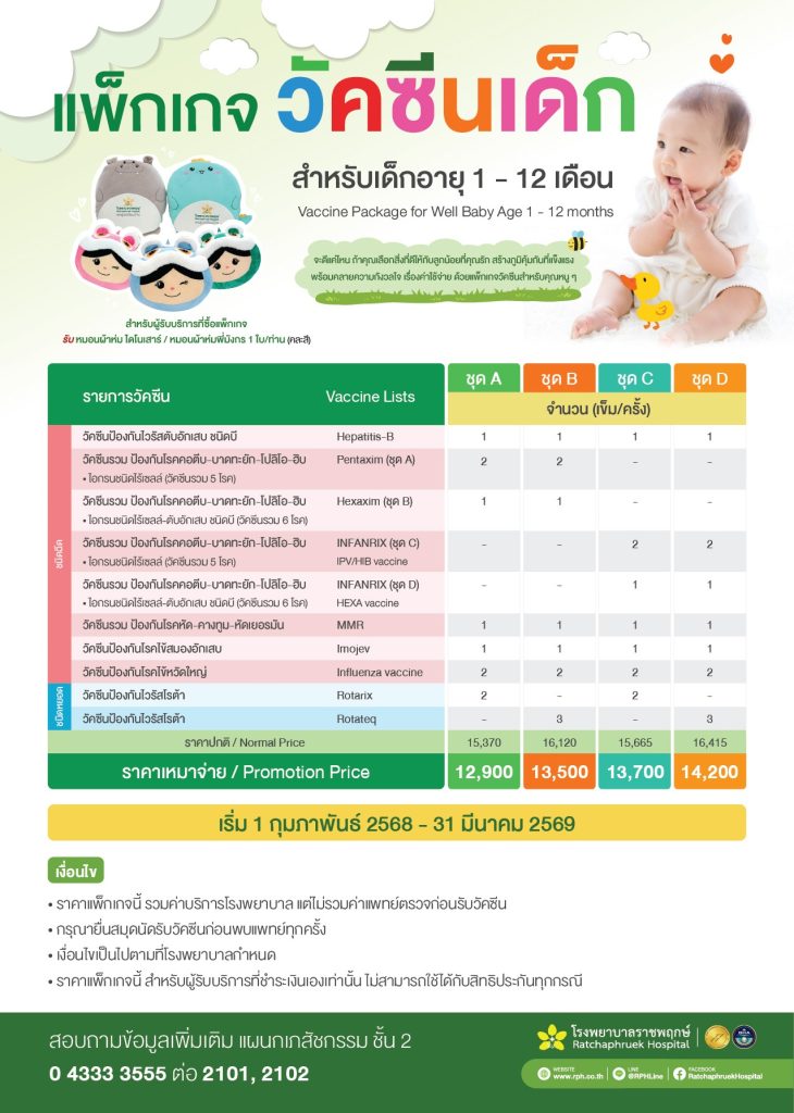 - ราคาแพ็กเกจนี้ รวมค่าบริการโรงพยาบาล แต่ไม่รวมค่าแพทย์ตรวจก่อนรับวัคซีน
