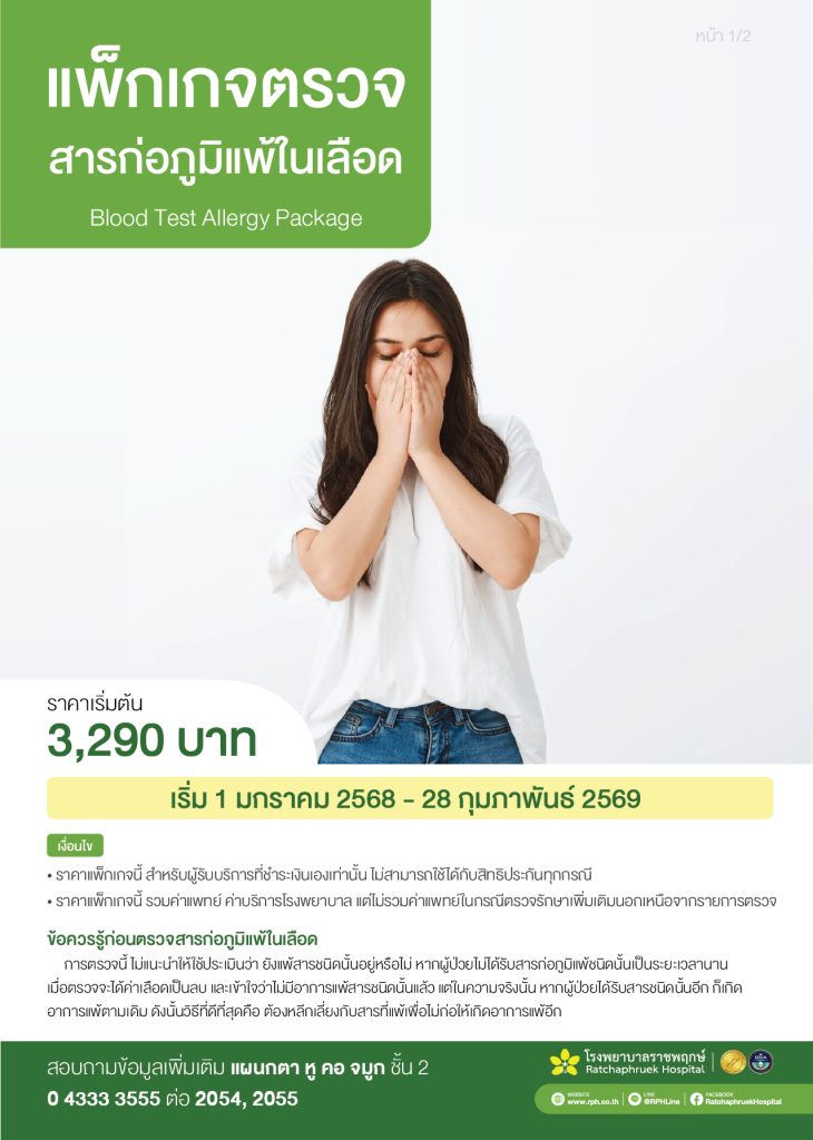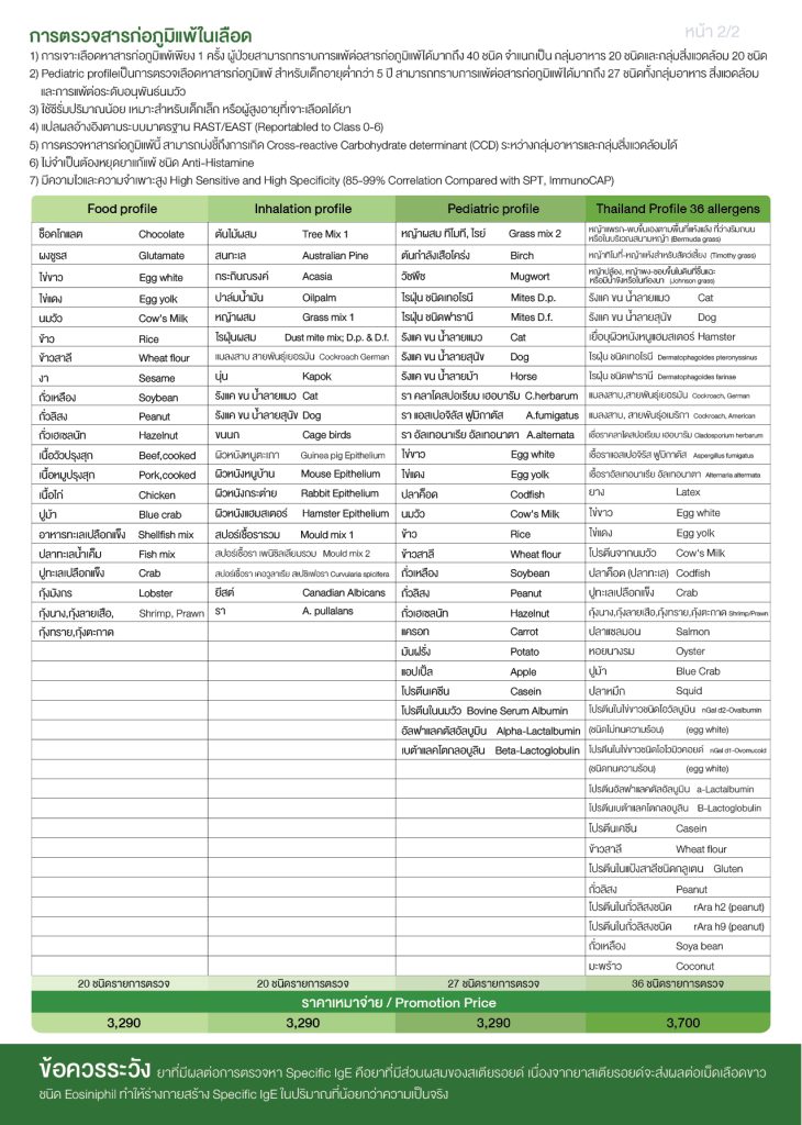 แพ็กเกจนี้เป็นการตรวจเลือดเพื่อหาสารก่อภูมิแพ้ชนิดต่าง ๆ โดยการตรวจเลือด