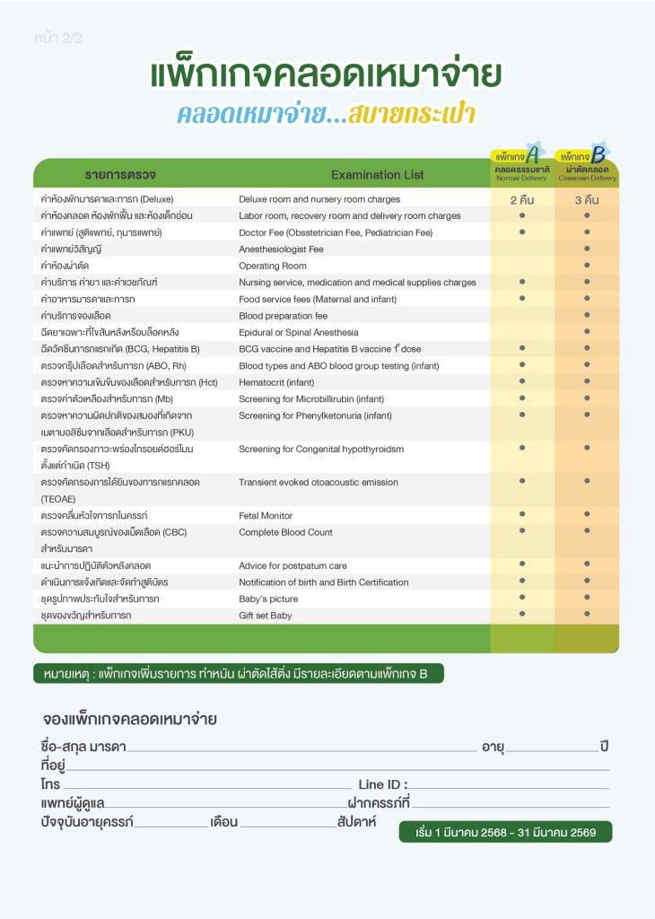 (อายุครรภ์น้อยกว่า 37 สัปดาห์) ไม่สามารถใช้แพ็กเกจคลอดเหมาจ่ายได้ - ราคาแพ็กเกจนี้ สำหรับผู้รับบริการที่ชำระเงินเองเท่านั้น ไม่สามารถใช้ได้กับสิทธิประกันทุกกรณี