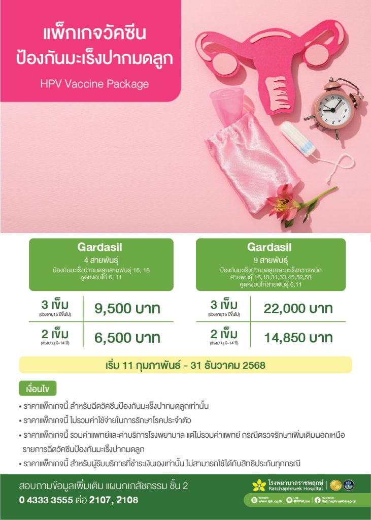 แพ็กเกจนี้เป็นวัคซีนป้องกันการติดเชื้อไวรัส HPV ที่เป็นสาเหตุสำคัญของการเกิดมะเร็งปากมดลูก