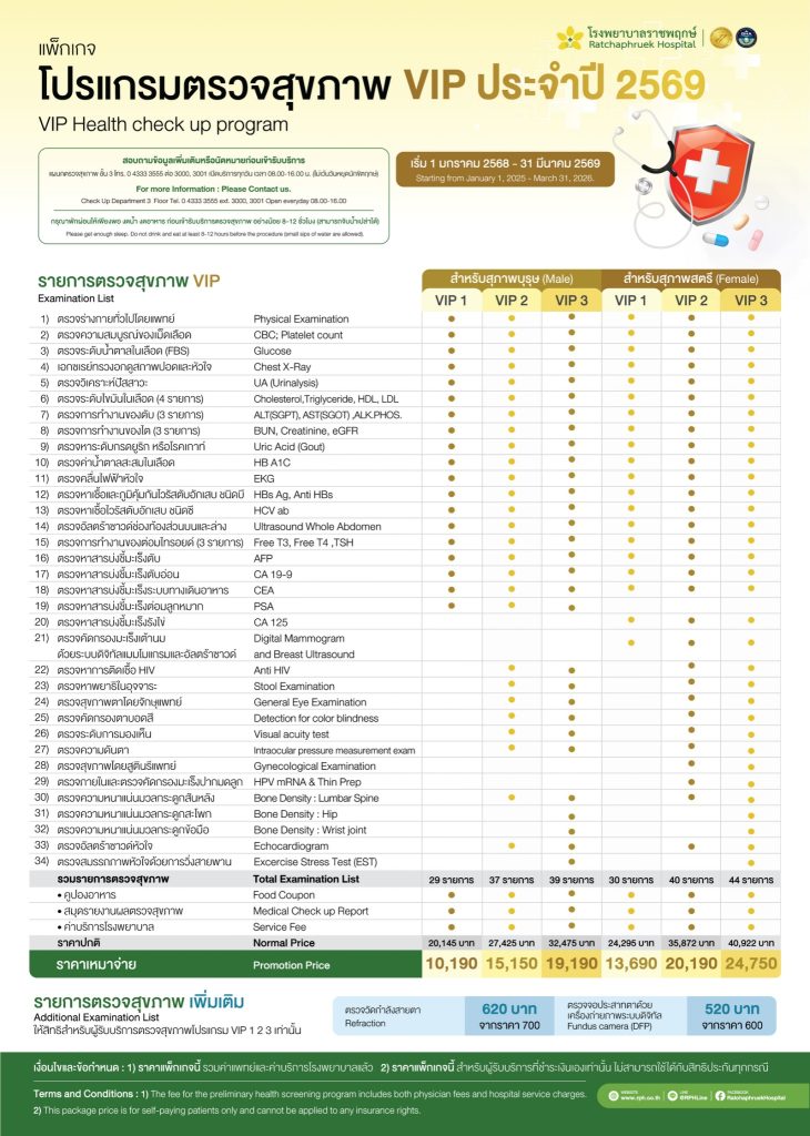 โปรแกรมตรวจสุขภาพ VIP ประจำปี 2569 (VIP Health Check up Program 2026)