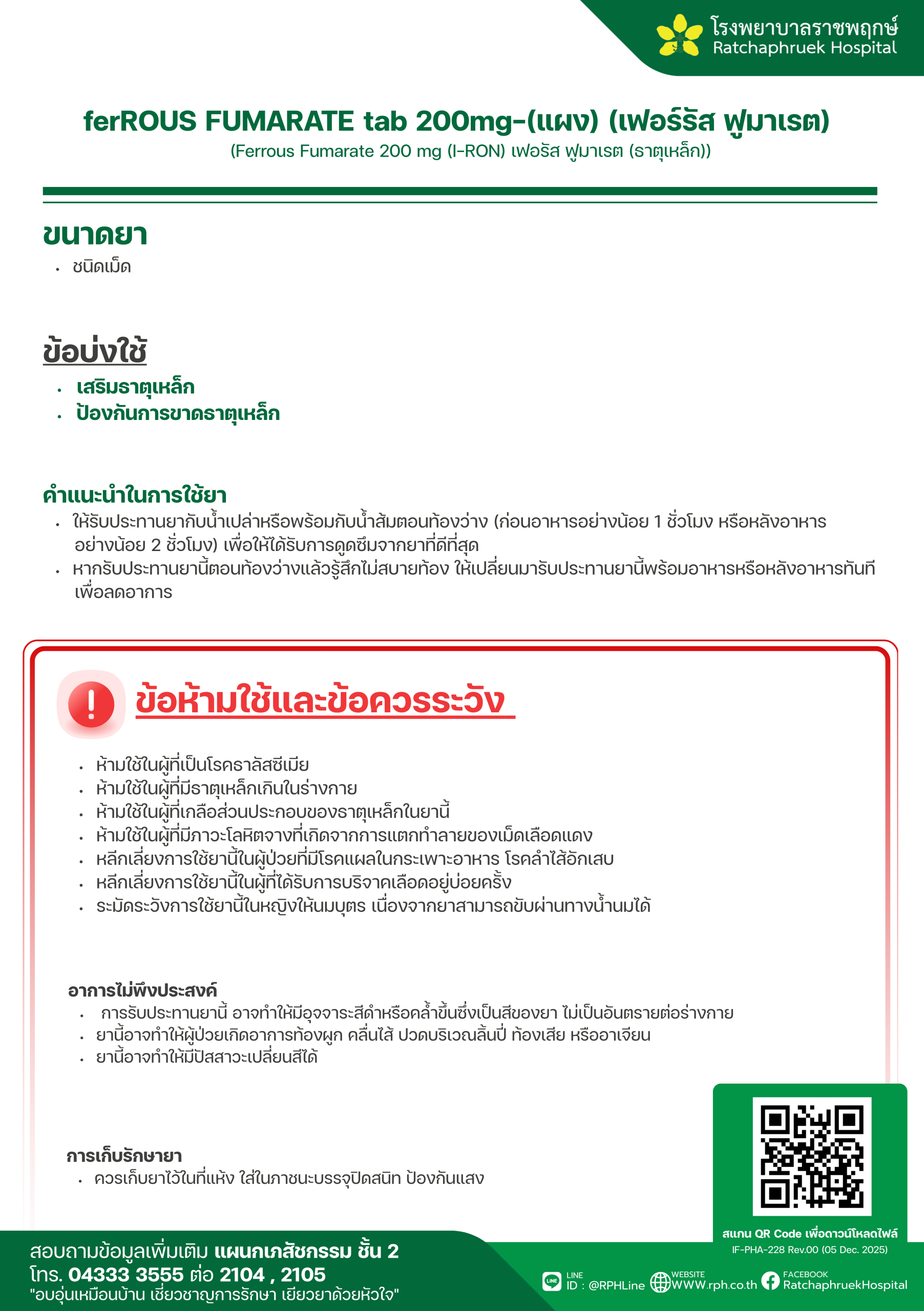 Drug Information Ferrous Fumarate Oral Suspension 76 mg/5 mL 60 mL GPO (FERROKID) (ยาน้ำเฟอรัส ฟูมาเรต) เมื่อวันที่ 13 มกราคม 2569