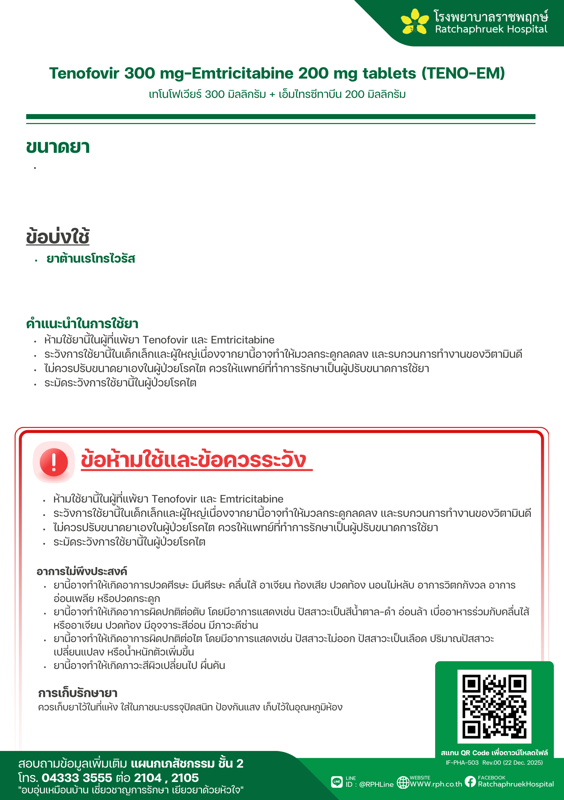 Drug Information Tenofovir 300 mg-Emtricitabine 200 mg tablets (TENO-EM) (เทโนโฟเวียร์ และ เอ็มไทรซีทาบีน) เมื่อวันที่ 30 มกราคม 2569