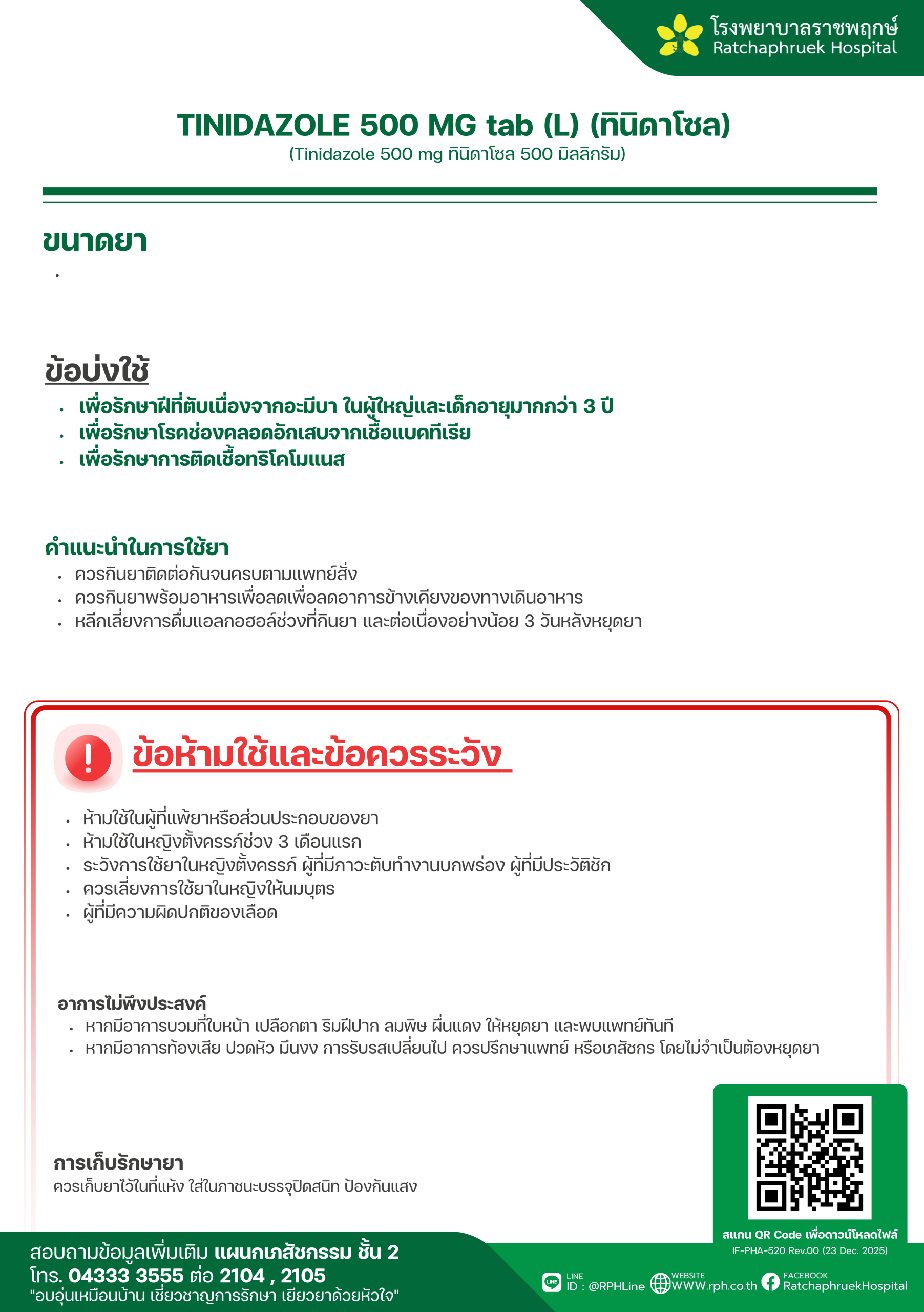 TINIDAZOLE 500 MG tab (L) (ทินิดาโซล)