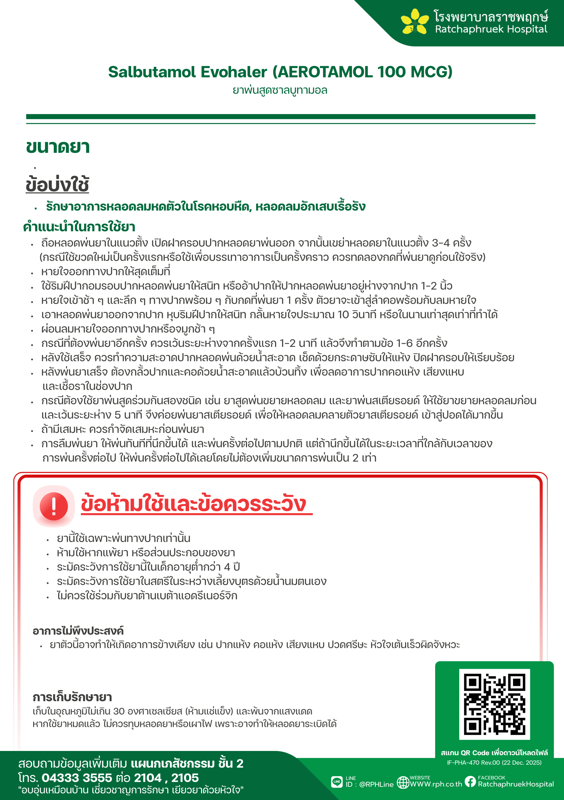 Drug Information Salbutamol Evohaler (AEROTAMOL 100 MCG) (ยาพ่นสูดซาลบูทามอล) เมื่อวันที่ 29 มกราคม 2569