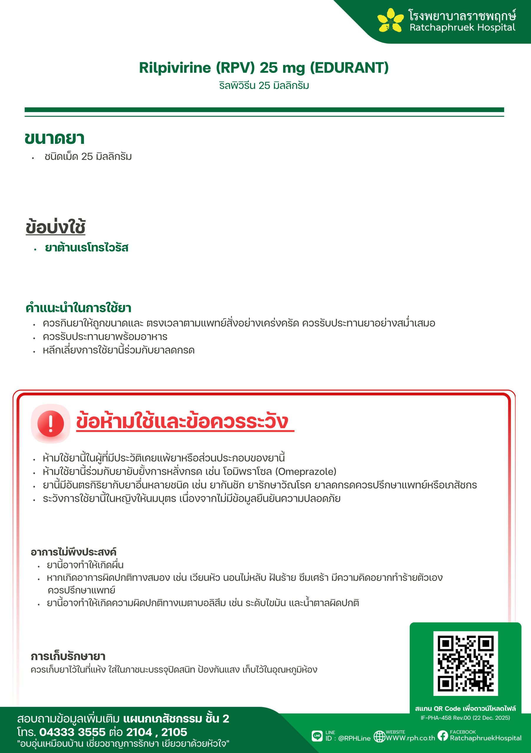 Drug Information RIFINAH 150 (Rifampicin 150 mg + Isoniazid 100 mg) (ไรฟิน่า) เมื่อวันที่ 29 มกราคม 2569