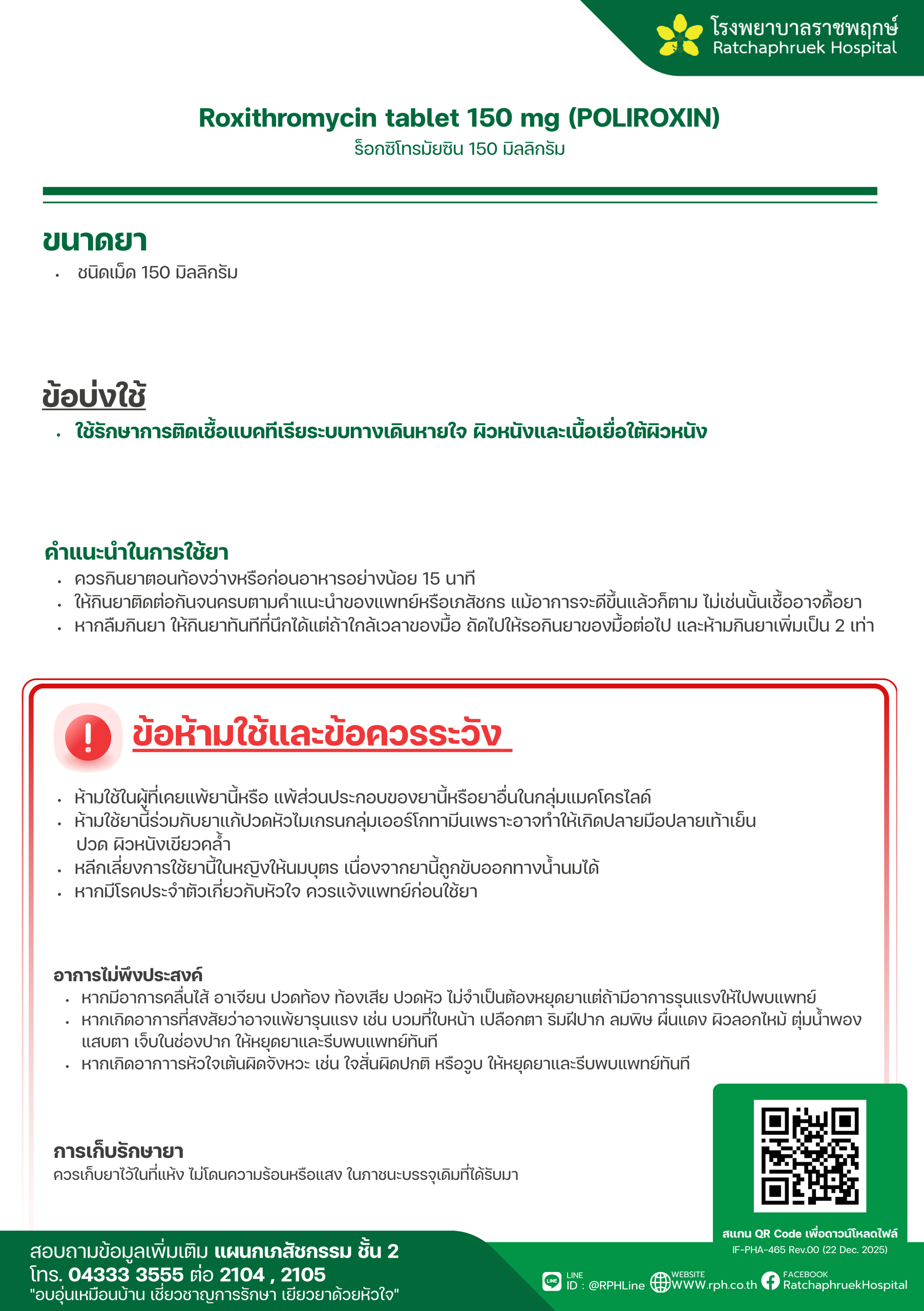 Drug Information Roxithromycin tablet 150 mg (POLIROXIN) (ร็อกซิโทรมัยซิน) เมื่อวันที่ 29 มกราคม 2569