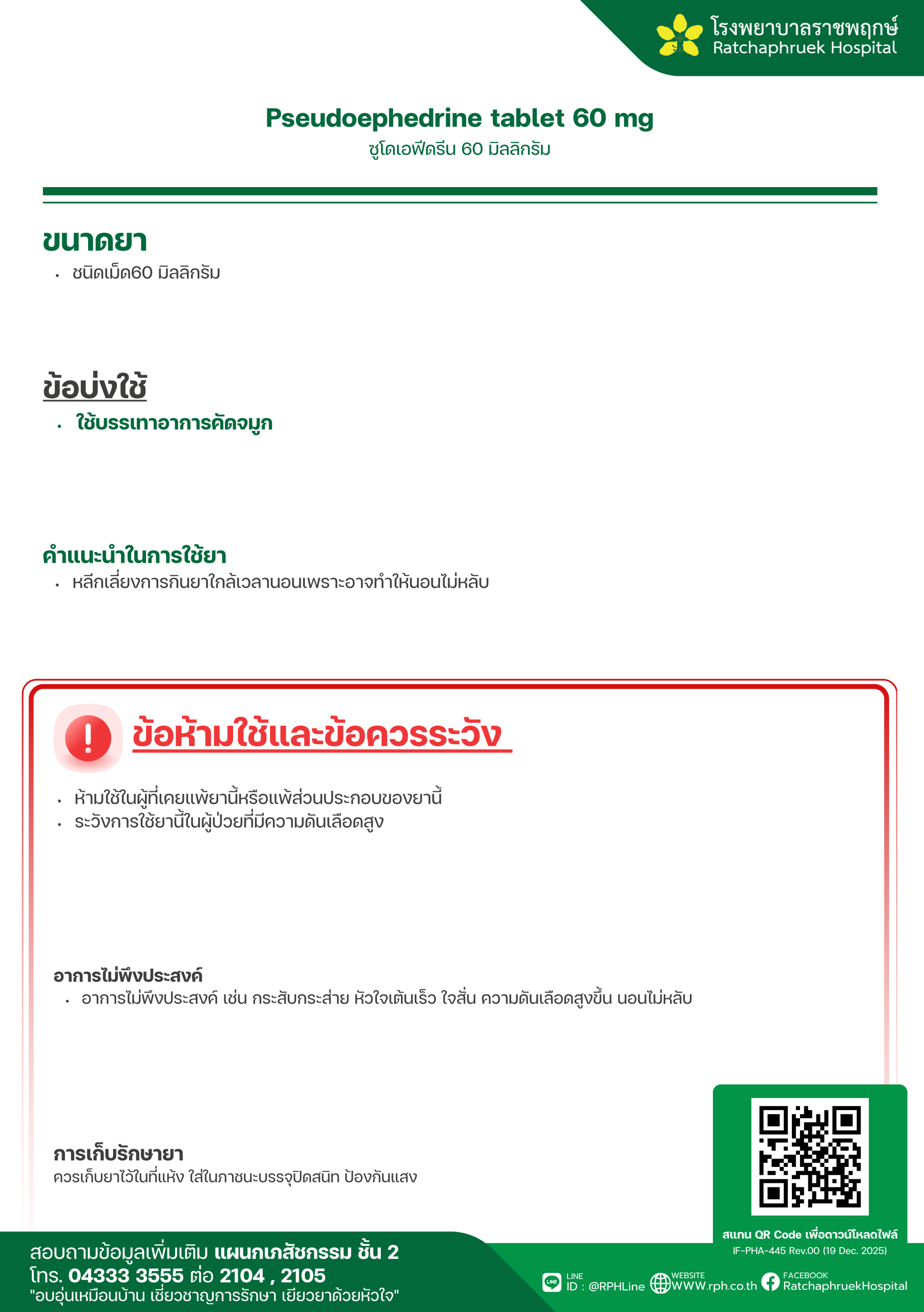 Drug Information Pseudoephedrine syrup 30 mg/5 mL (ยาน้ำเชื่อมซูโดเอฟีดรีน) เมื่อวันที่ 29 มกราคม 2569