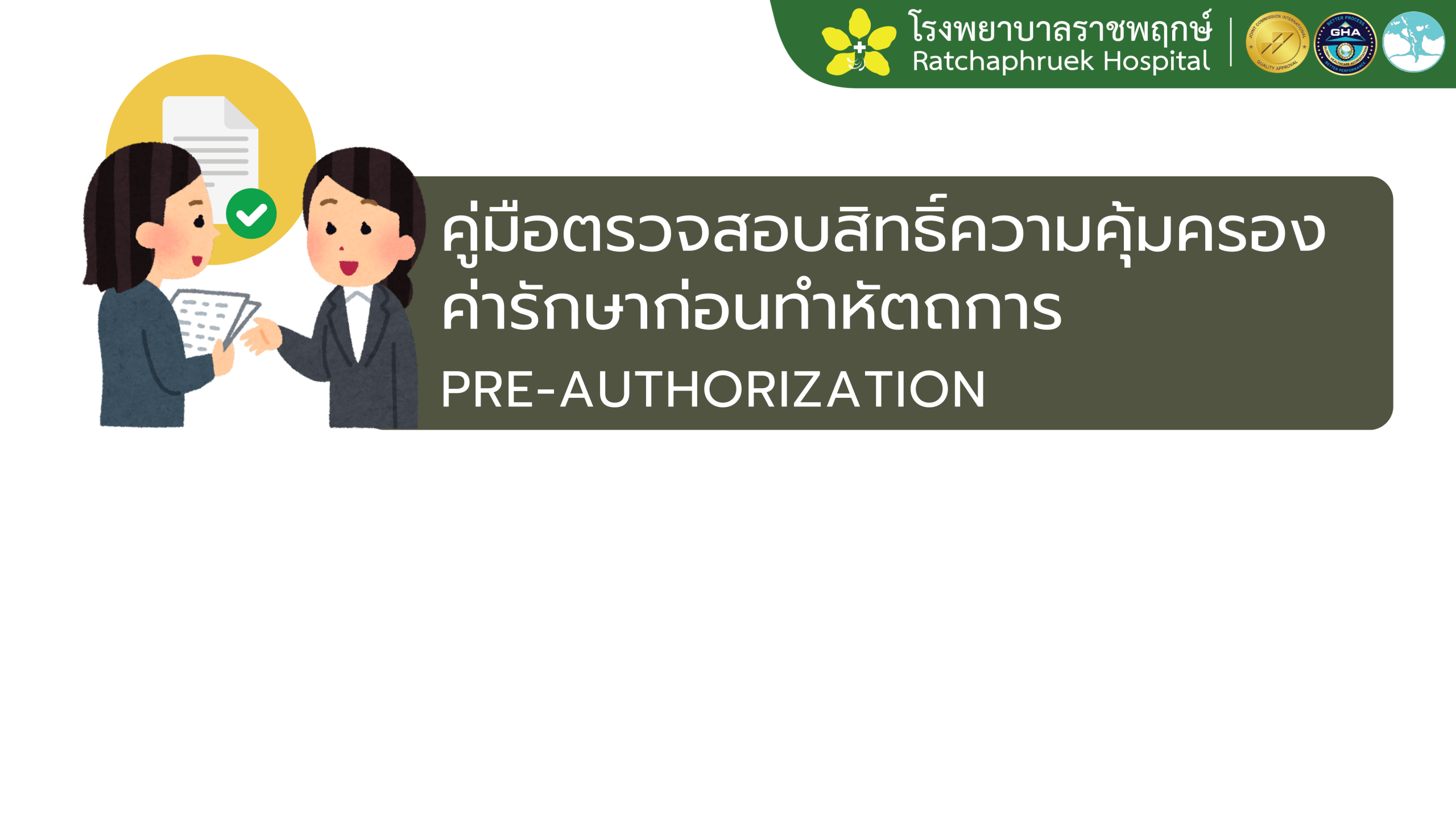 Infographics คู่มือ ตรวจสอบสิทธิ์ความคุ้มครอง ค่ารักษาก่อนทำหัตถการ Pre-Authorization เมื่อวันที่ 16 ธันวาคม 2568